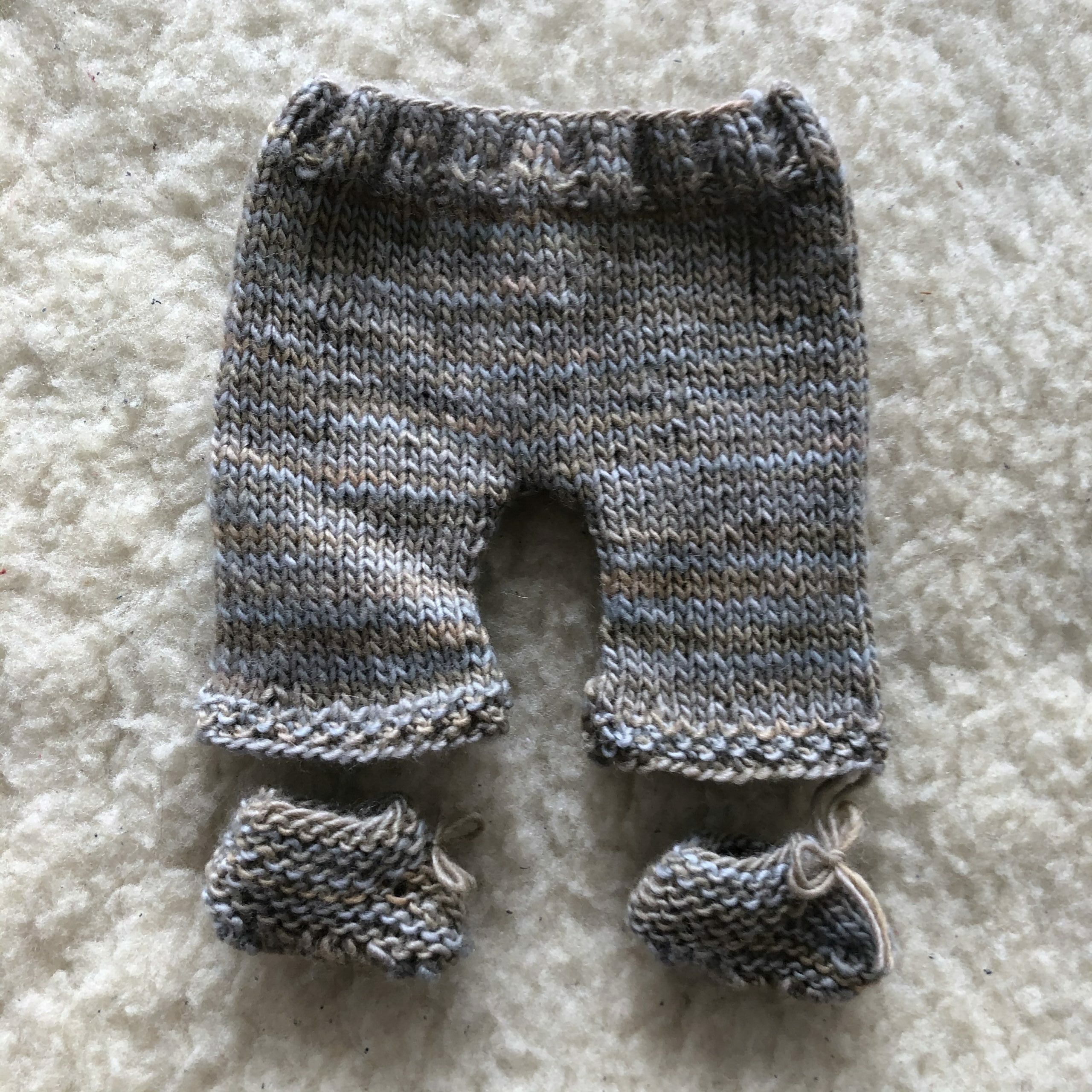 100% duurzame wolzijde broekje en schoentjes. Dit schattige setje is speciaal gebreid voor een popje van 30cm. Het garen is van Manos del Uruguay en bestaat uit 70% merinowol en 30% zijde.