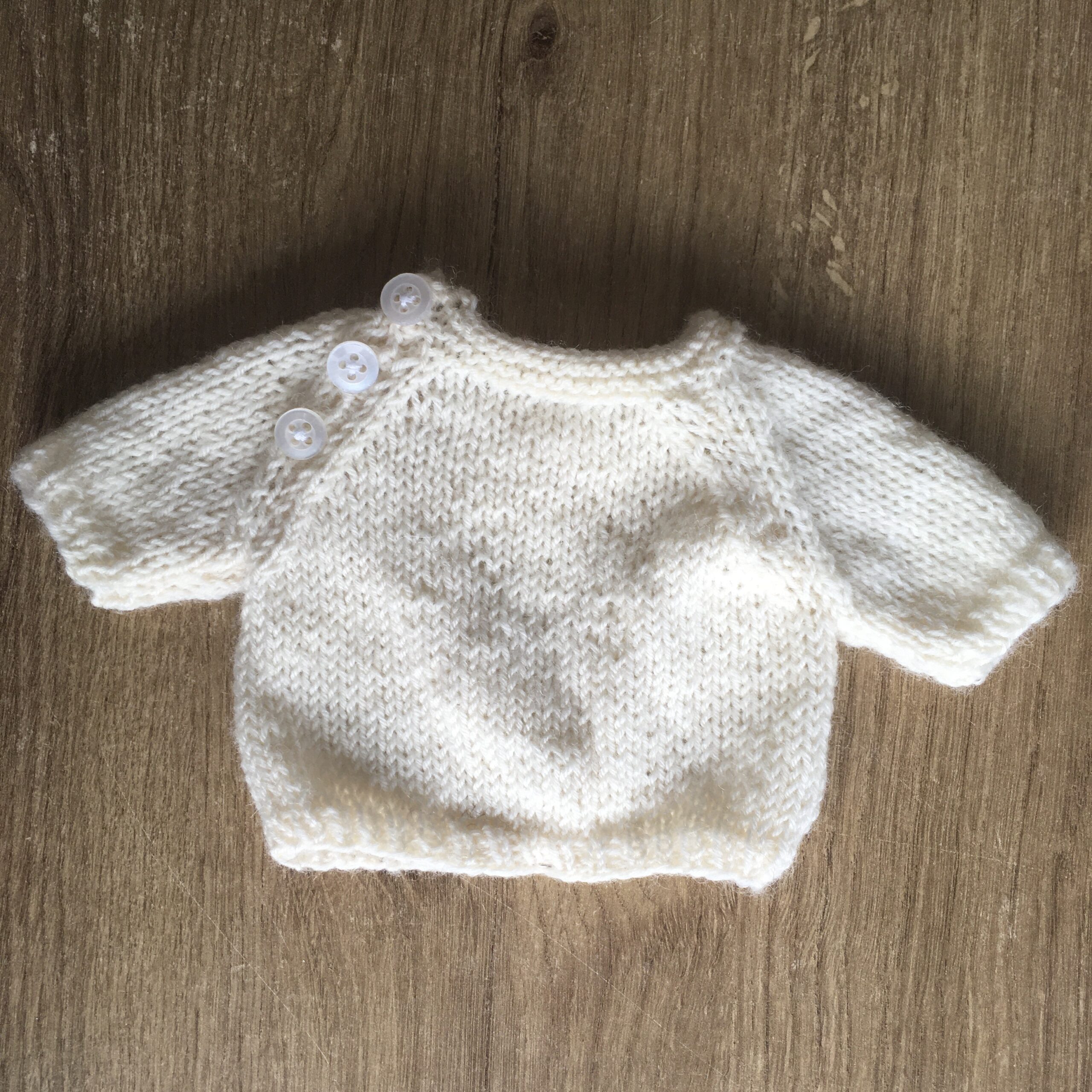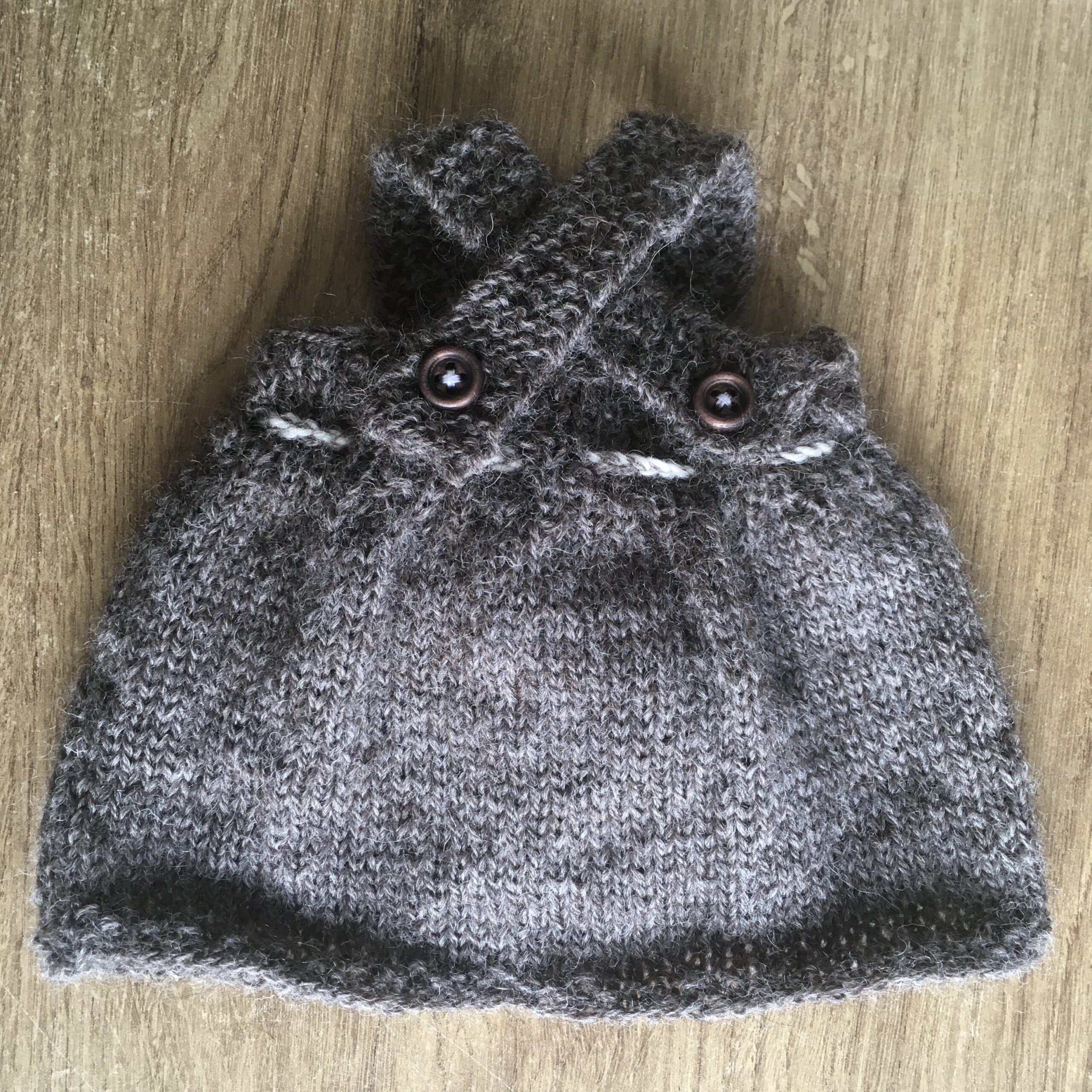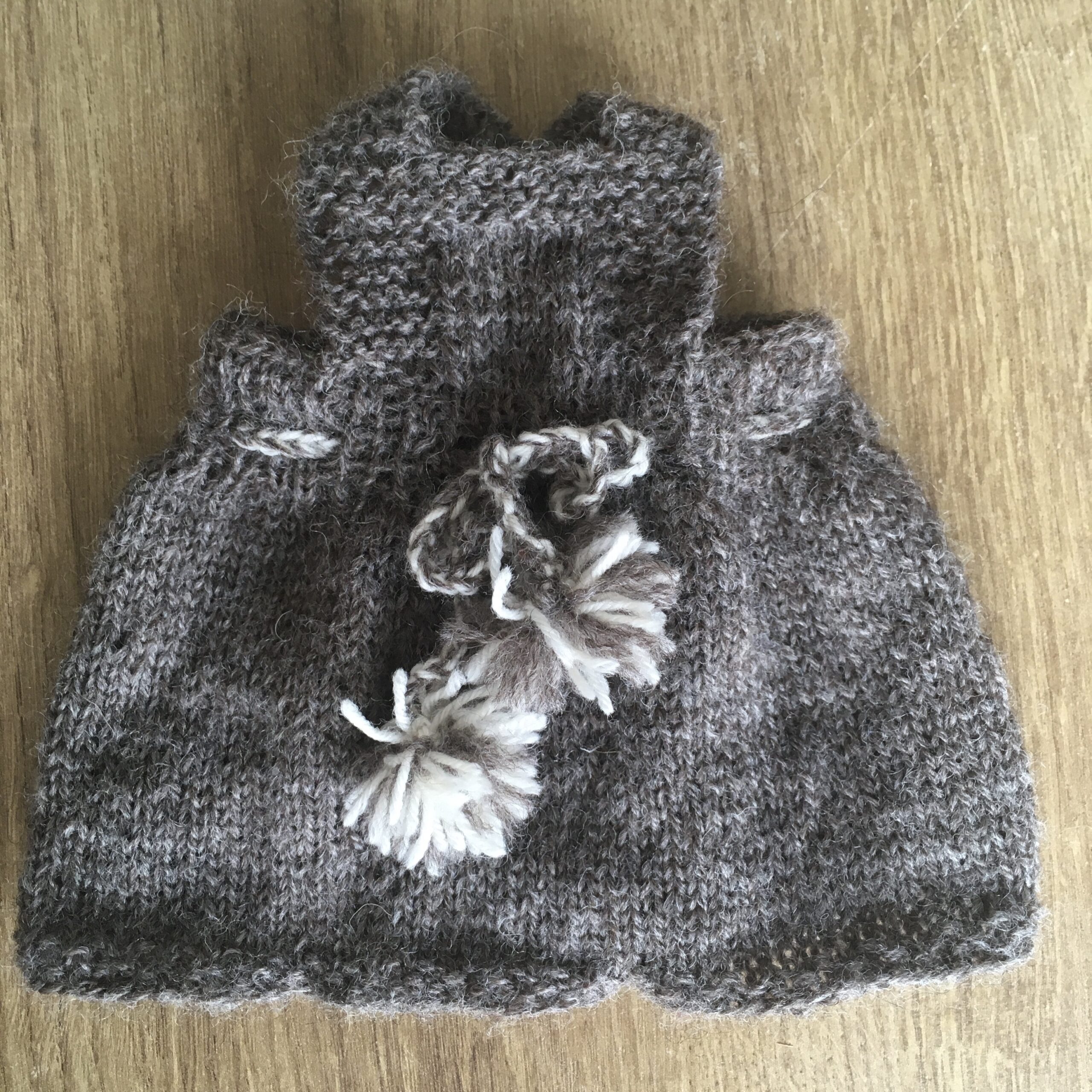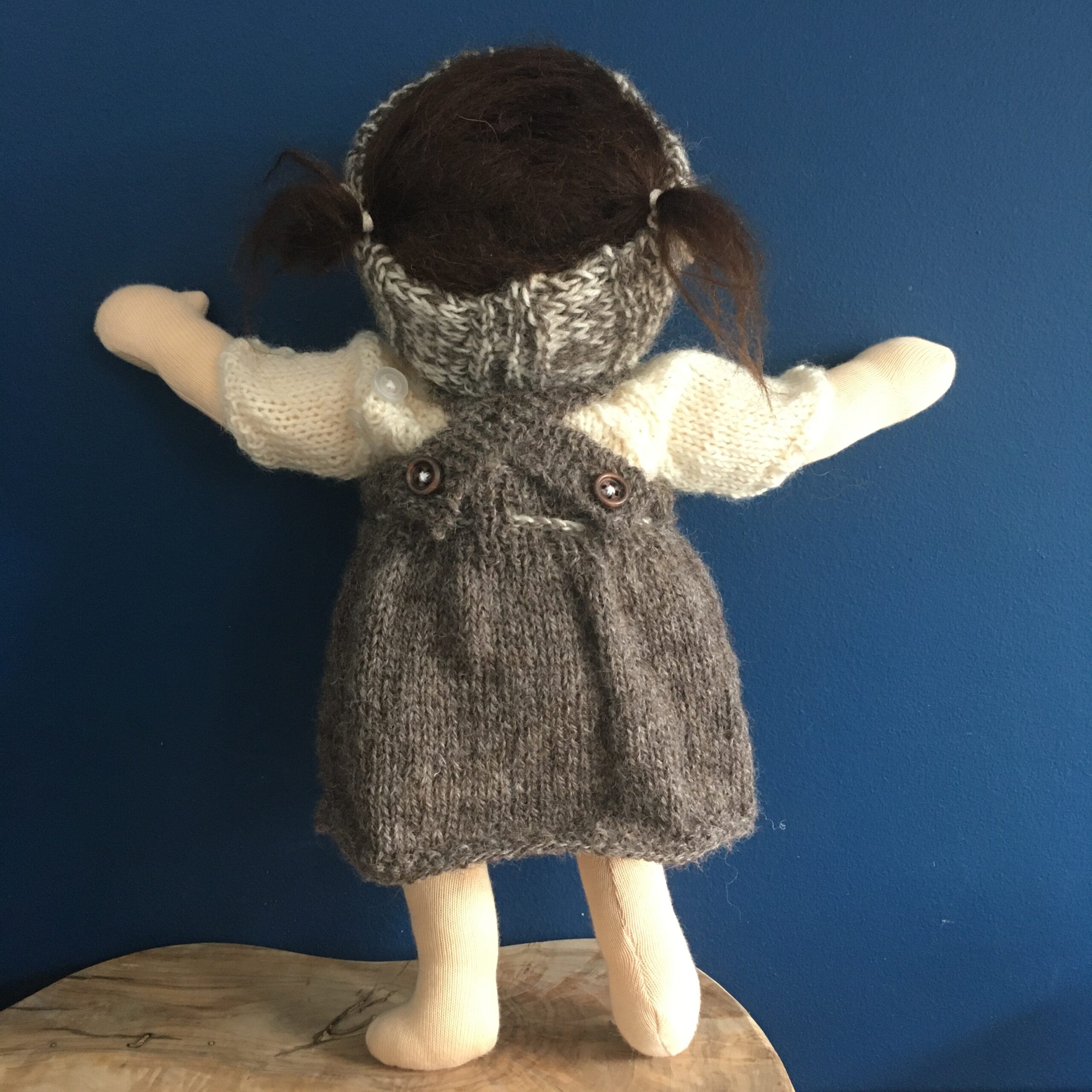 Dit lieve kledingsetje is gebreid van 85% wol en 15% brandnetel. Dit garen is op duurzame wijze verkregen en verwerkt. Ook is het op natuurlijke basis geverfd. Het setje bestaat uit een haarband, een onderbroekje, een jurkje en een truitje.